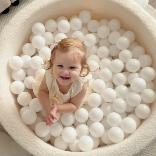 Apvalus kamuoliukų baseinas (90 cm) | Baltas Bouclé audinys