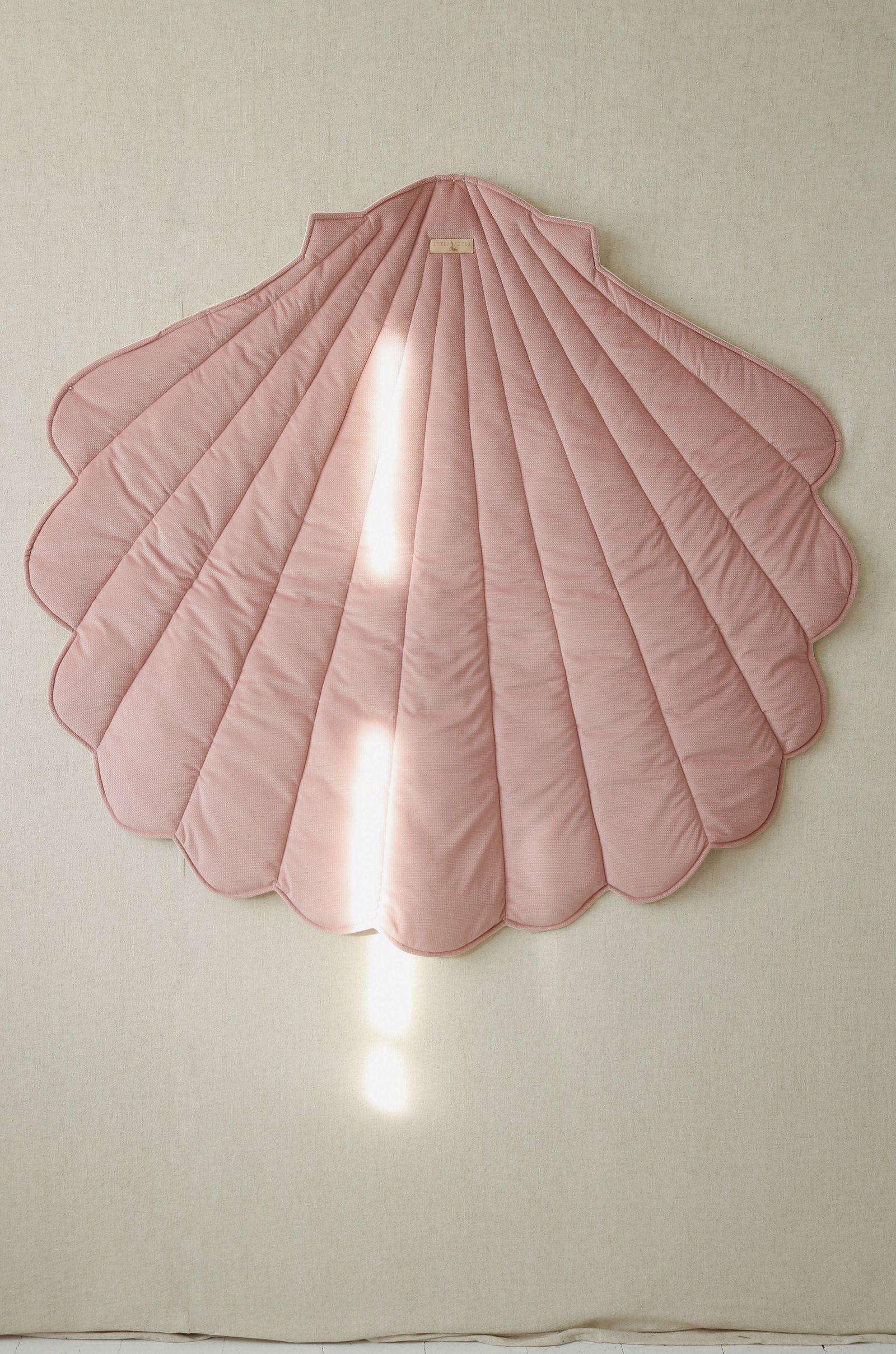 Kriauklės formos minkštas medvilnės ir švelnaus veliūro kilimėlis idealiai tinka: